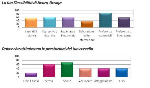 Successivamente, nel corso della sessione di rilascio individuale che può essere effettuata di persona o on line, ti verrà consegnata la relazione dettagliata che consiste in un report di 29 pagine che illustra i risultati relativamente ai 13 componenti della tua Neuro-Agilità e i suggerimenti per ottimizzarla.