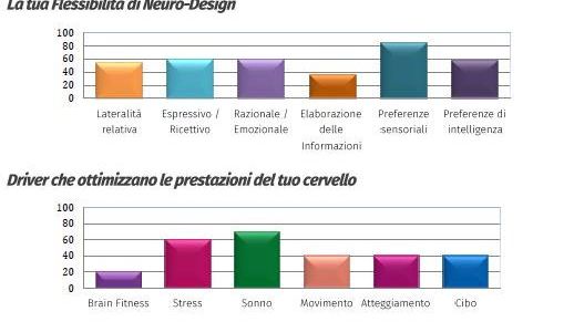 Successivamente, nel corso della sessione di rilascio individuale che può essere effettuata di persona o on line, ti verrà consegnata la relazione dettagliata che consiste in un report di 29 pagine che illustra i risultati relativamente ai 13 componenti della tua Neuro-Agilità e i suggerimenti per ottimizzarla.